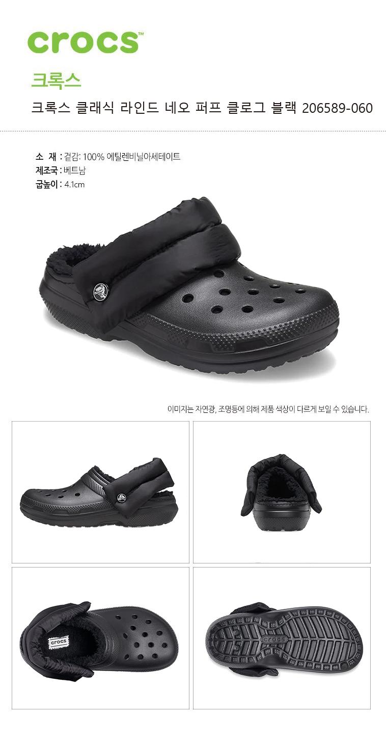 크록스 클래식 라인드 네오 퍼프 클로그 블랙 화이트 206589-060