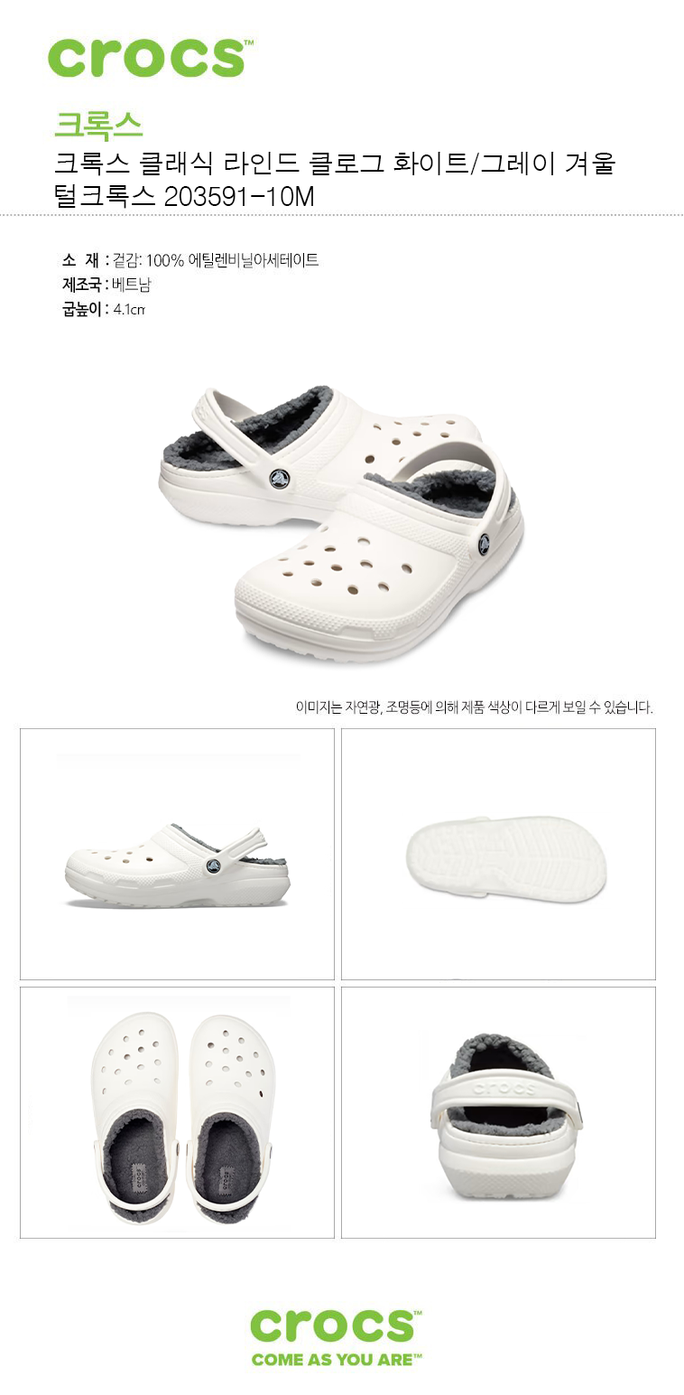 크록스 클래식 라인드 클로그 화이트/그레이 겨울 털크록스 203591-10M