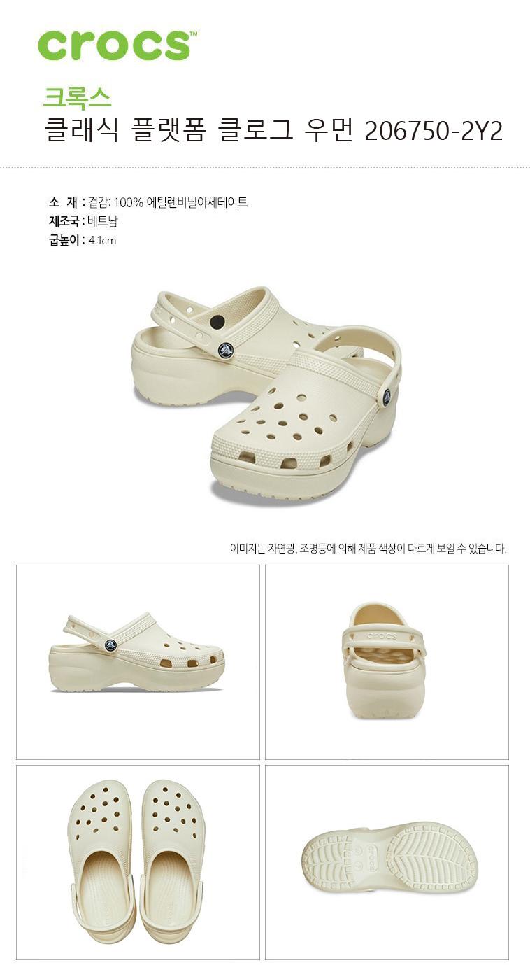 크록스 클래식 플랫폼 클로그 슬리퍼 샌들 본화이트 206750-2Y2