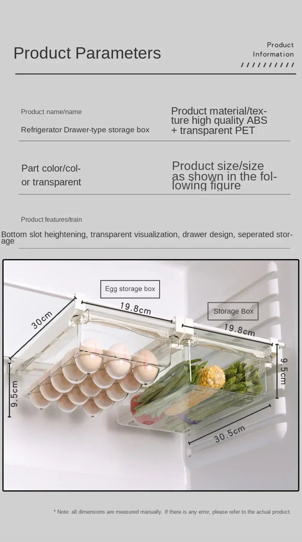 투명 냉장고 주최자 과일 계란 냉장고 보관 상자 선반 아래 냉장고 서랍 상자 신선 유지 주방 주최자
