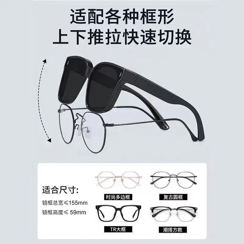 패션 사각 편광 선글라스 커버, 근시 처방 안경, 휴대용 남성 여성 빈티지 낚시 운전 안경 브래지어