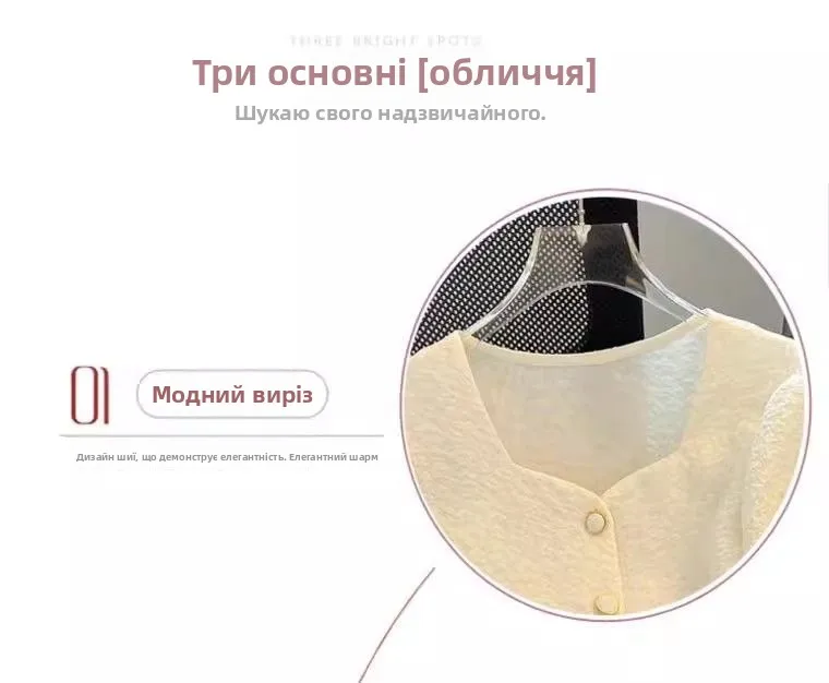 방형 칼라와 투명한 소재로, 여성의 매력적인 목선을 강조하며, 시원한 여름을 위한 완벽한 선택입니다.