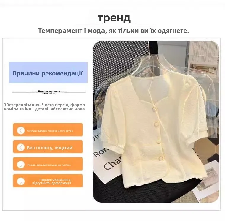 이 여성용 셔츠는 프랑스 스타일의 고급스러운 디자인으로, 세련된 스타일을 연출합니다.