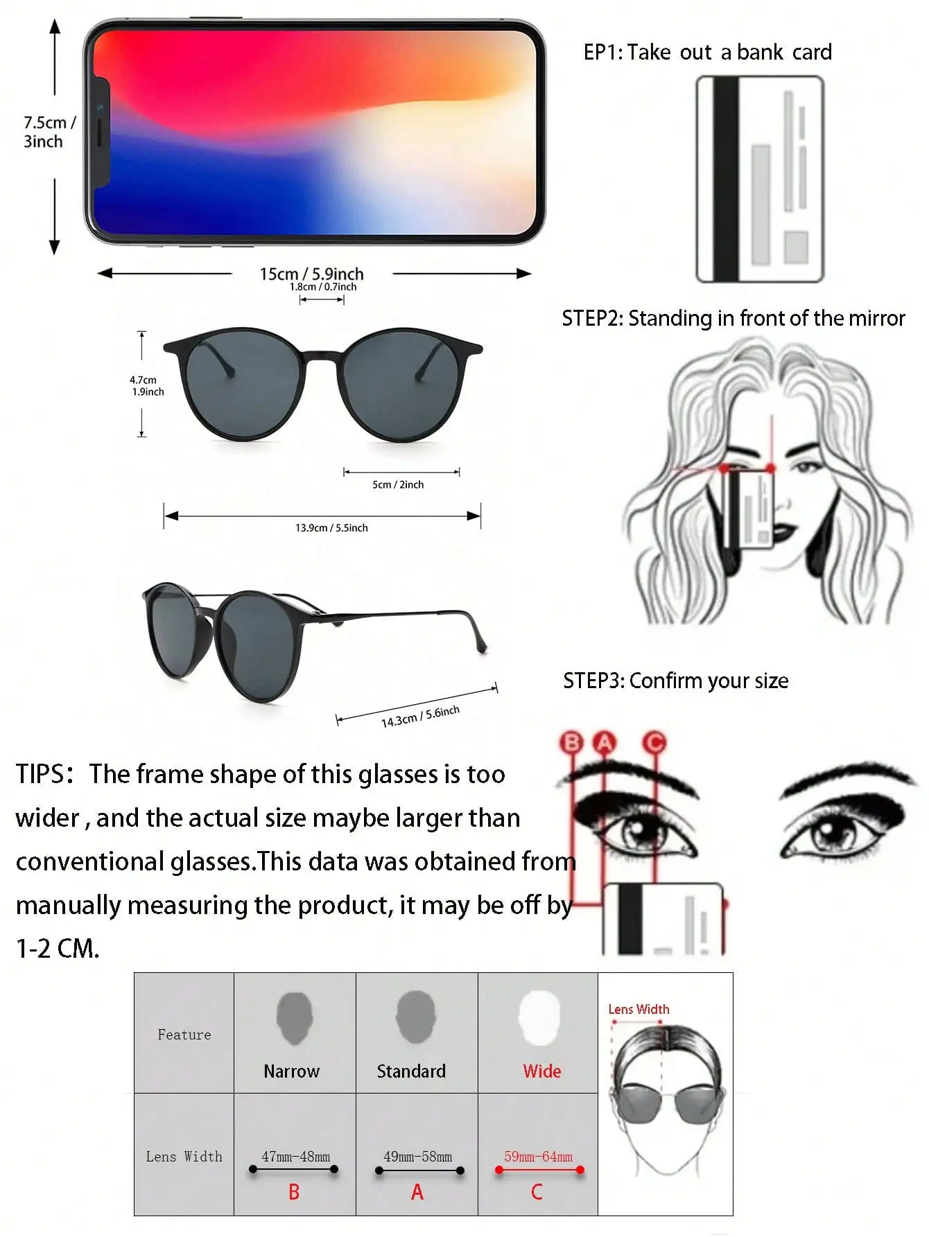 거울 너비 * 거울 높이 * 렌즈 거리 * 템플 길이 * 총 거울 너비(CM): 5*4.7*1.8*13.7*14.5