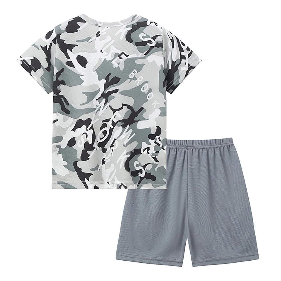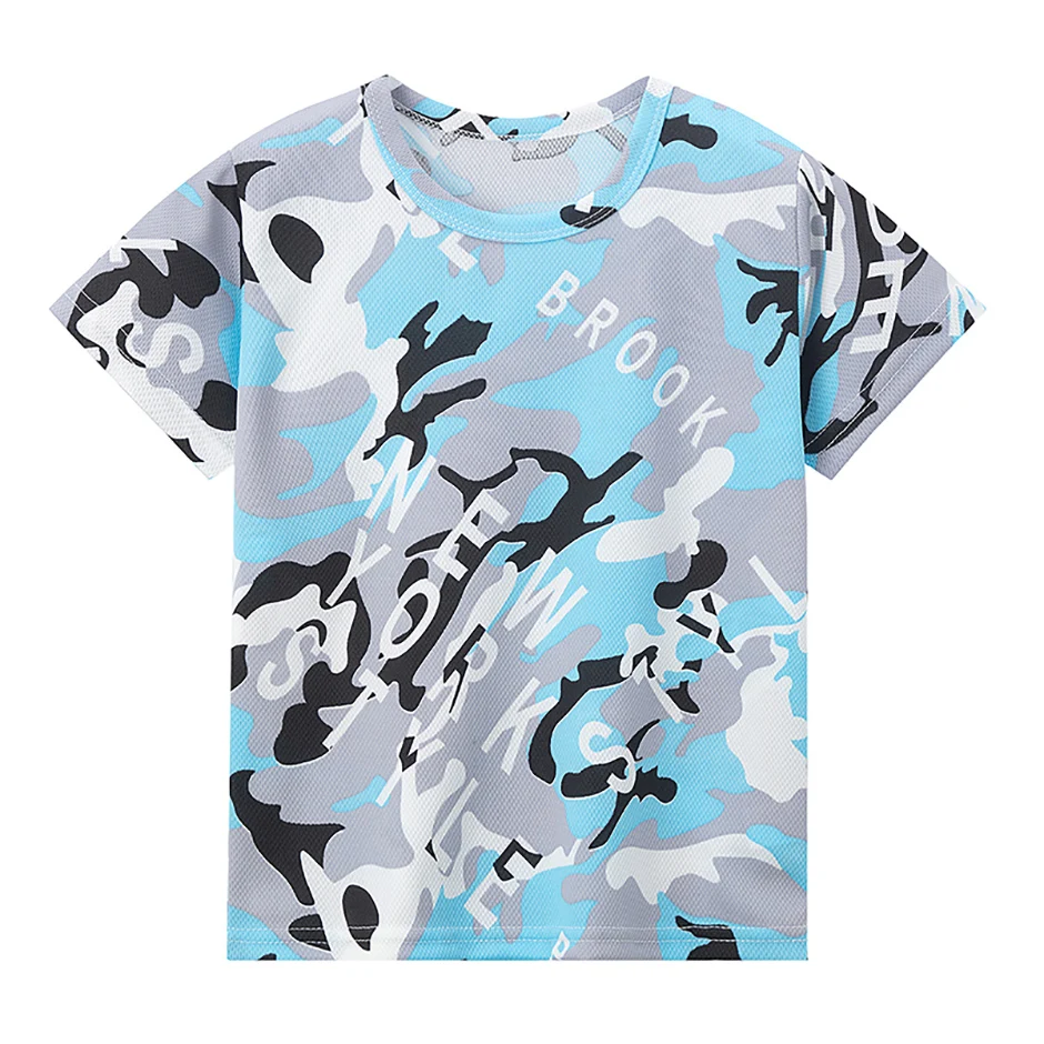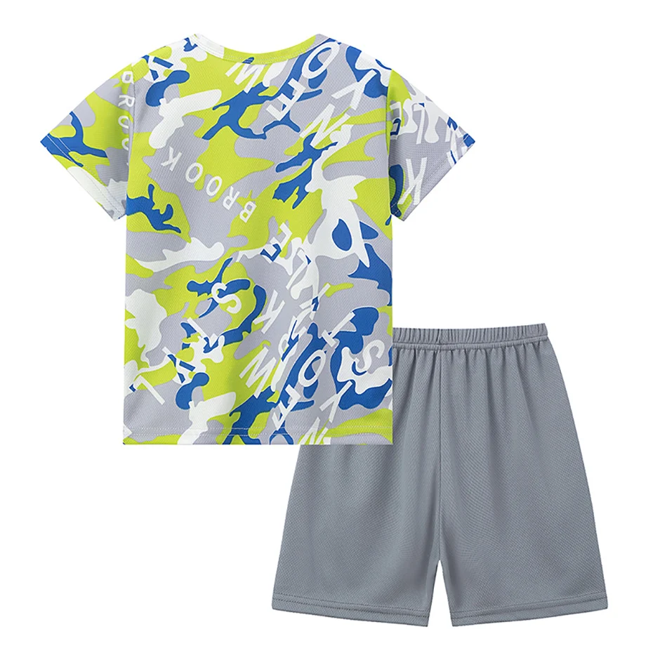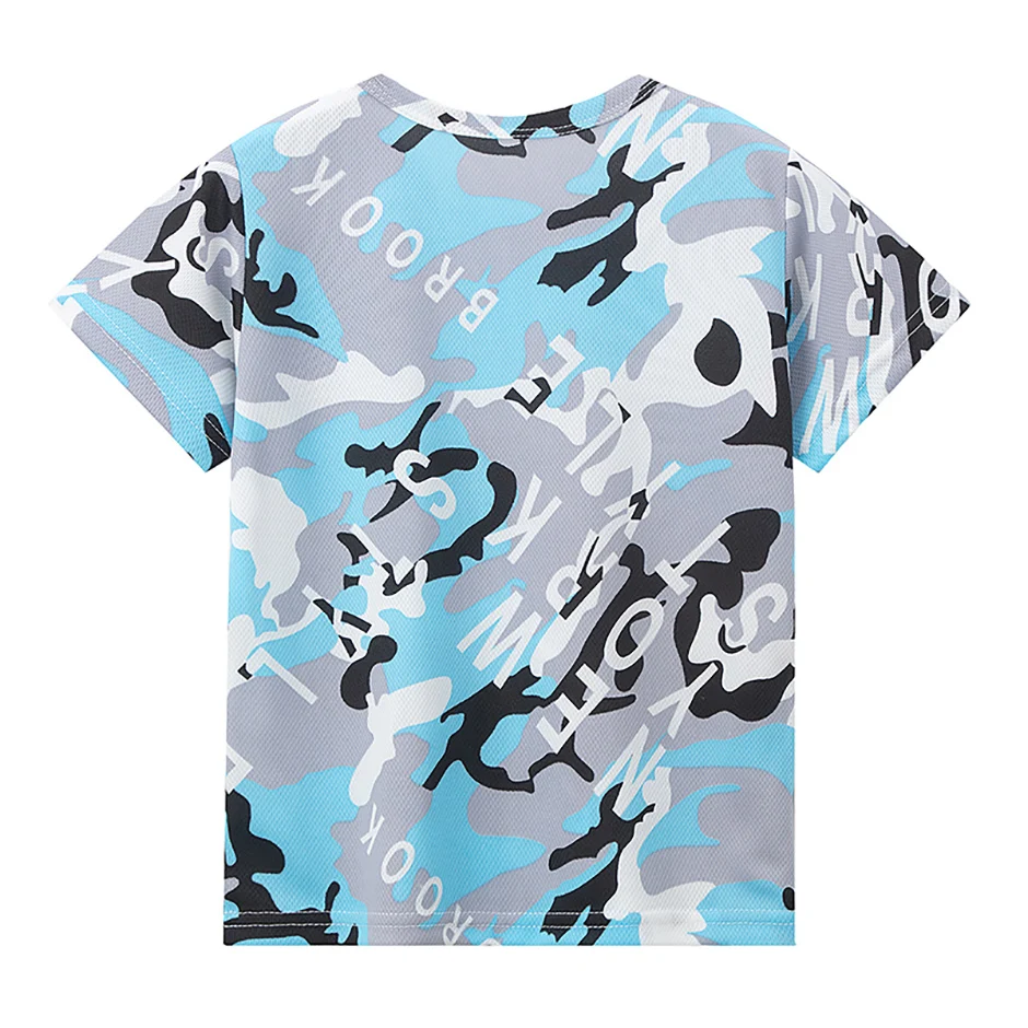 2/6 팩 여름 어린이를위한 여러 가지 빛깔의 위장 빠른 건조 양복 소년 스포츠 러닝 반팔 반바지 소녀 레저 슈트