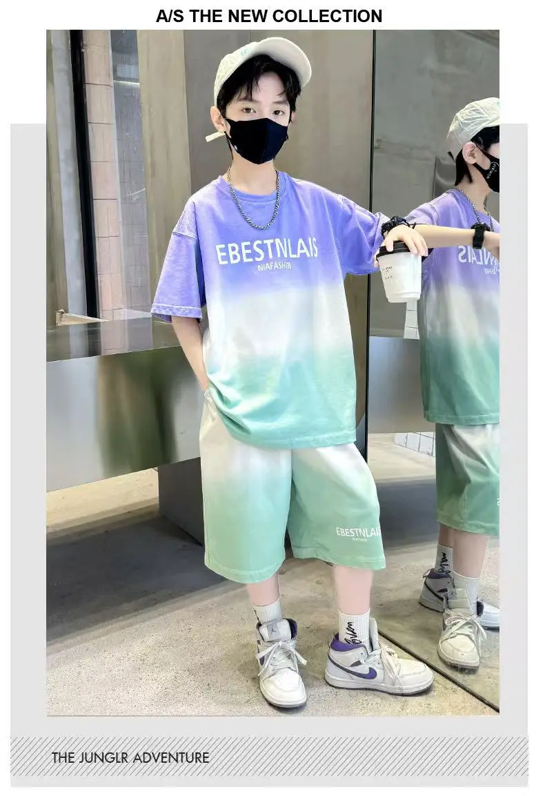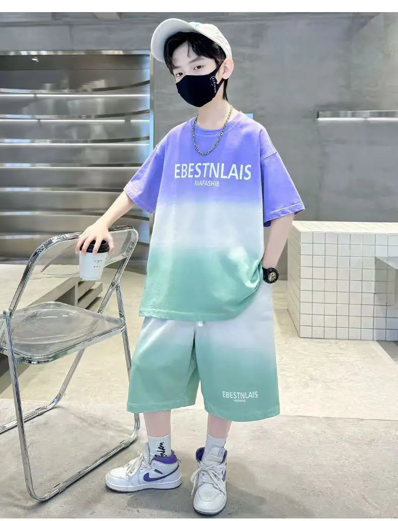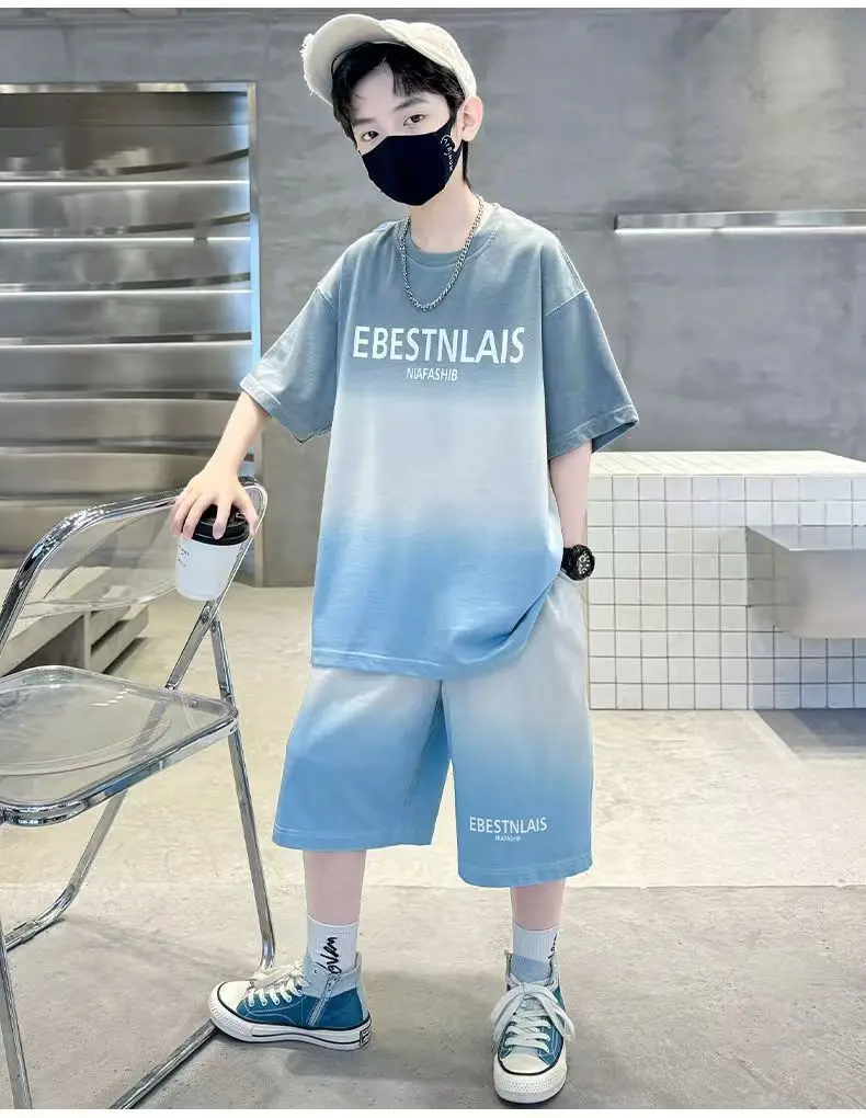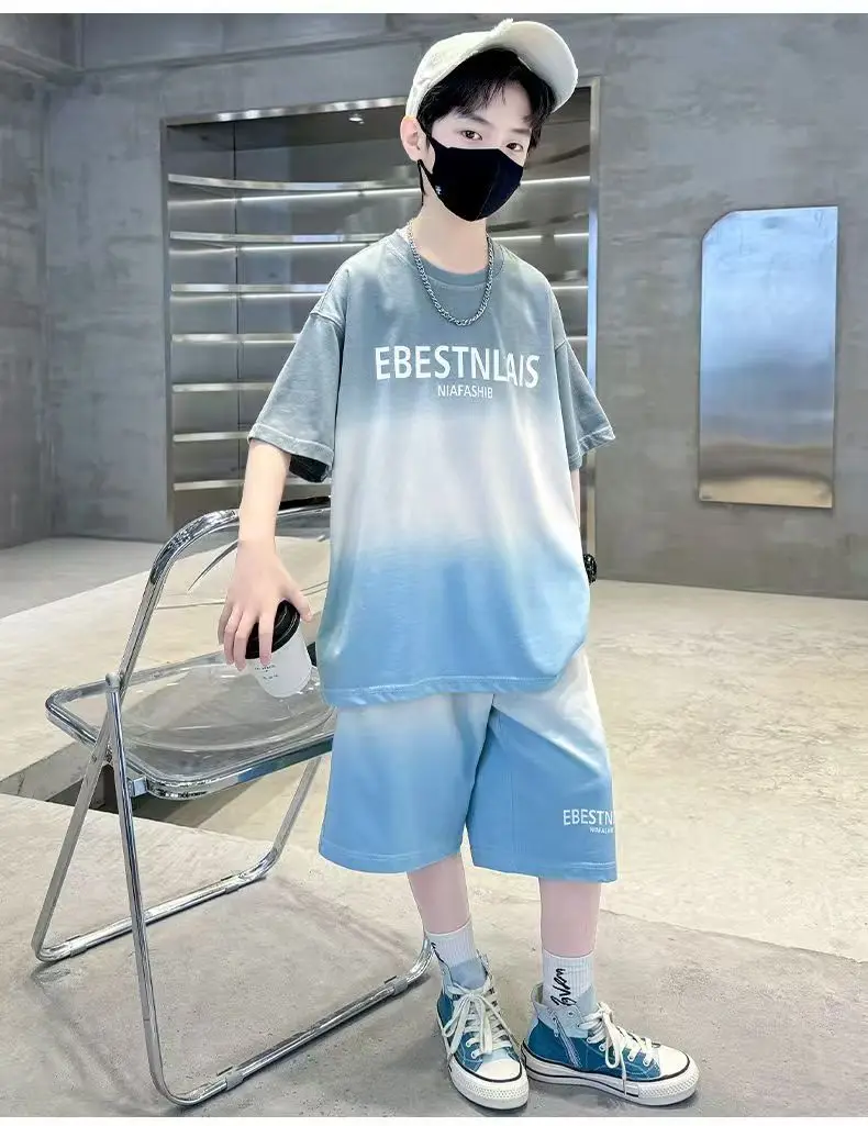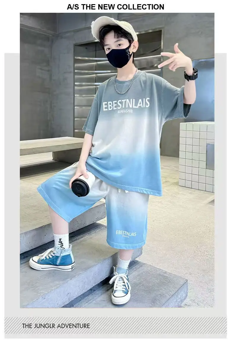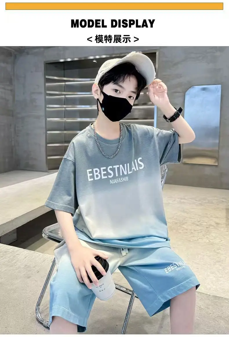 “2025년 여름 10대 남아 의류 세트 아동 레터링 트레이닝복 유아 티셔츠 상의 + 루즈핏 하의 반바지 바지 4 8 10 12 14세”의 첫 상품평을 남겨주세요 응답 취소