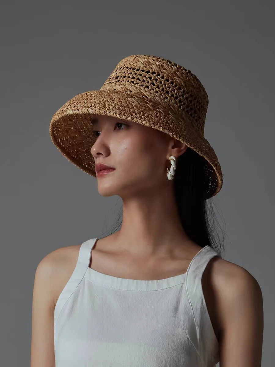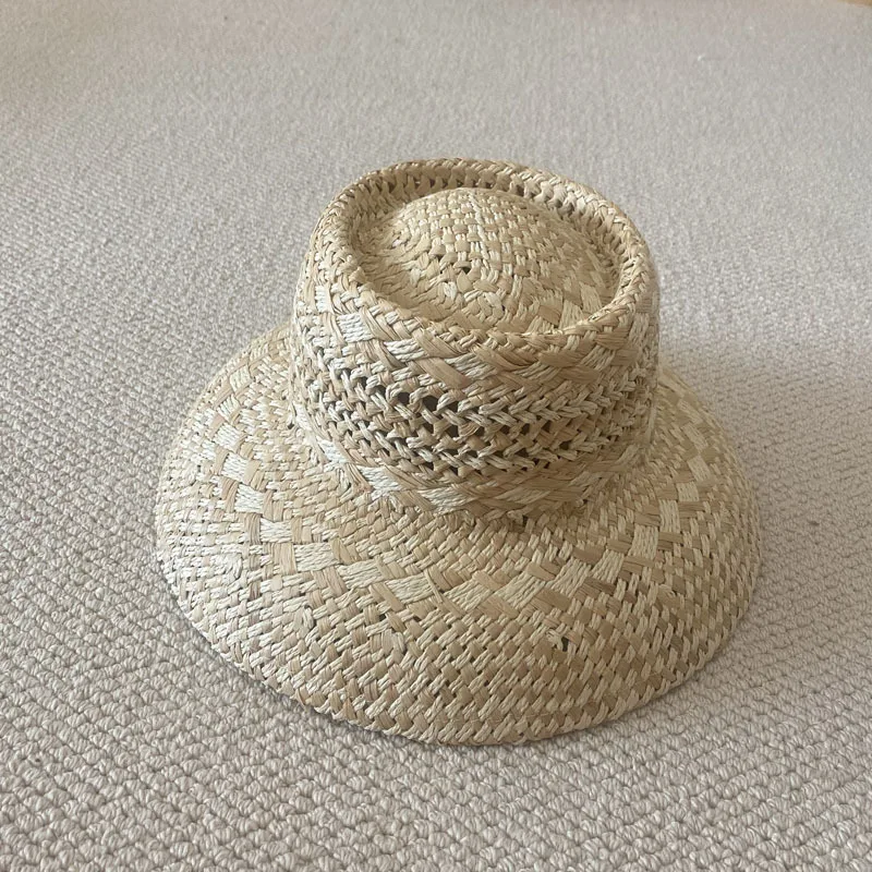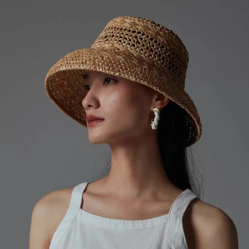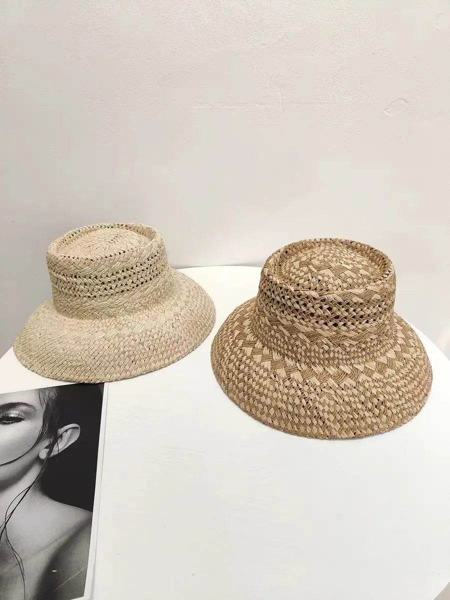 2025 새로운 프랑스어 복고풍 스타일 통기성 중공 라피아 태양 모자 숙녀 여름 여행 패션 오목 탑 밀짚 모자 모자 도매