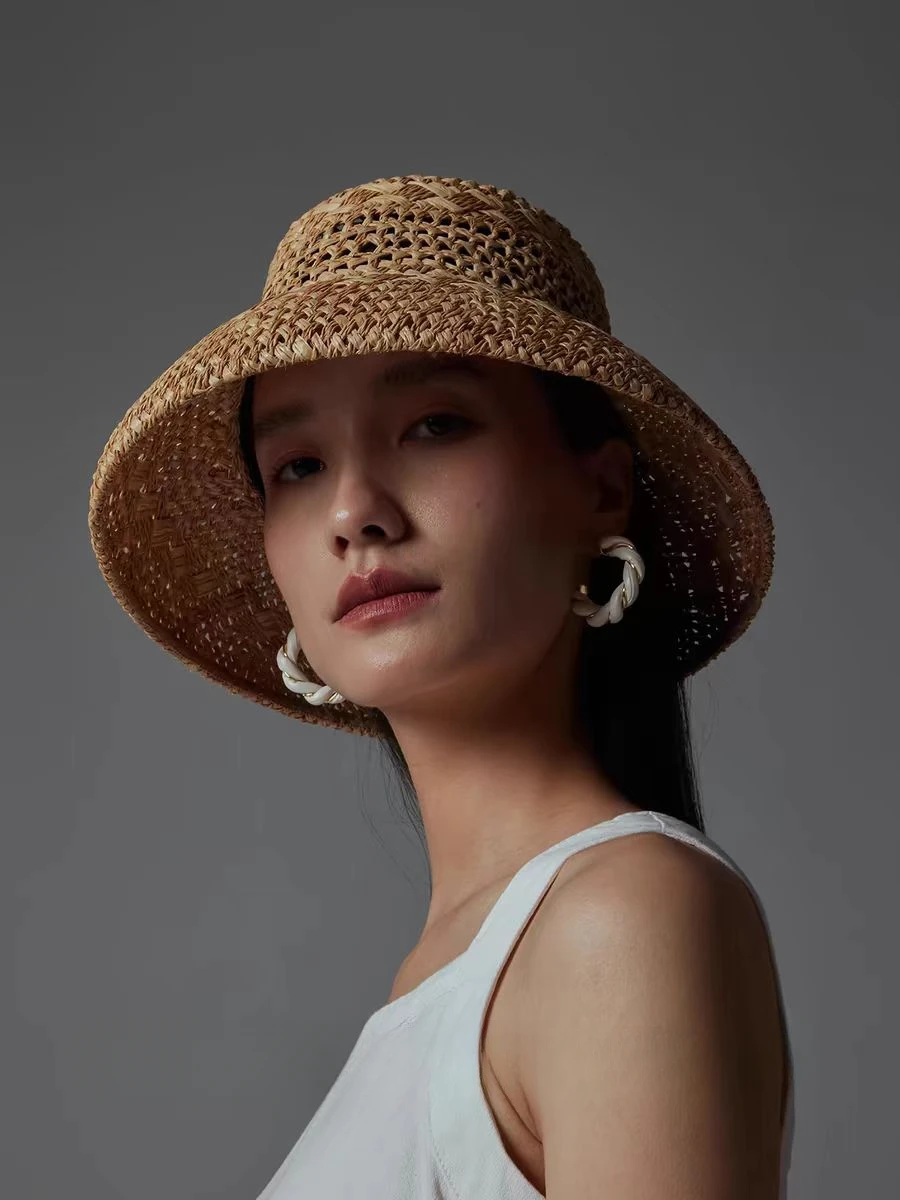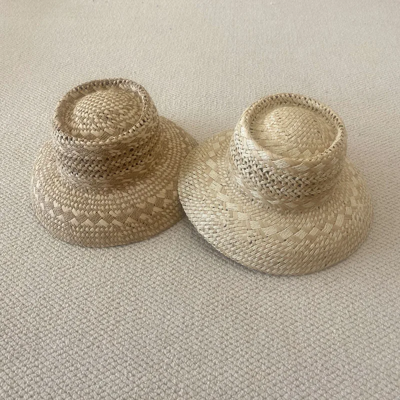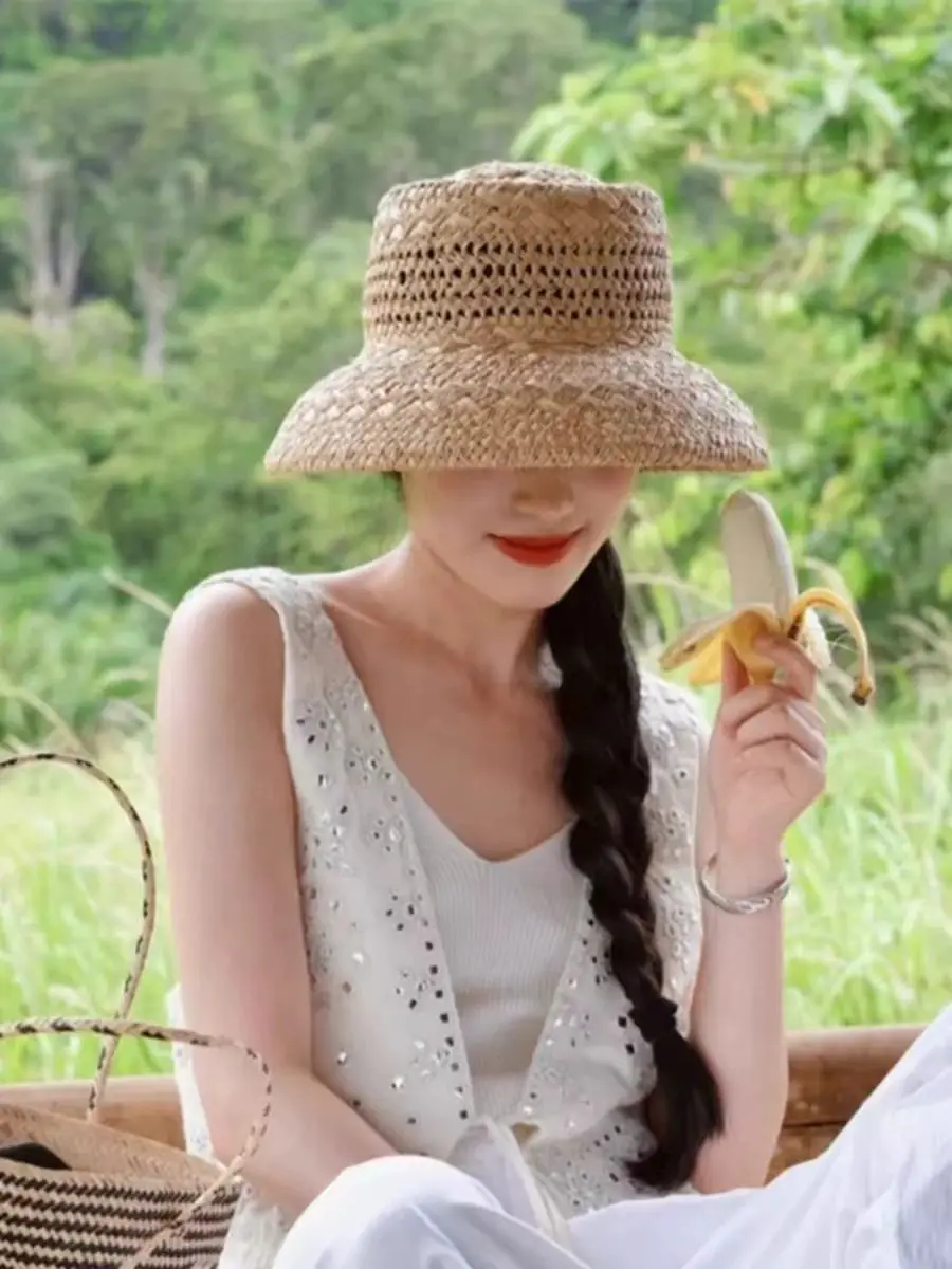 2025 새로운 프랑스어 복고풍 스타일 통기성 중공 라피아 태양 모자 숙녀 여름 여행 패션 오목 탑 밀짚 모자 모자 도매