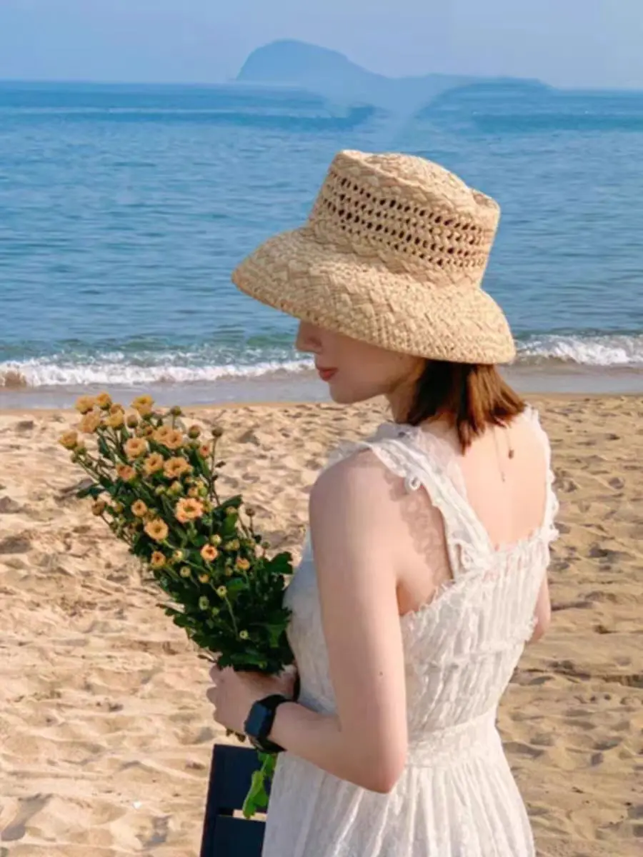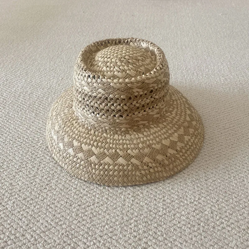 “2025 새로운 프랑스어 복고풍 스타일 통기성 중공 라피아 태양 모자 숙녀 여름 여행 패션 오목 탑 밀짚 모자 모자 도매”의 첫 상품평을 남겨주세요 응답 취소