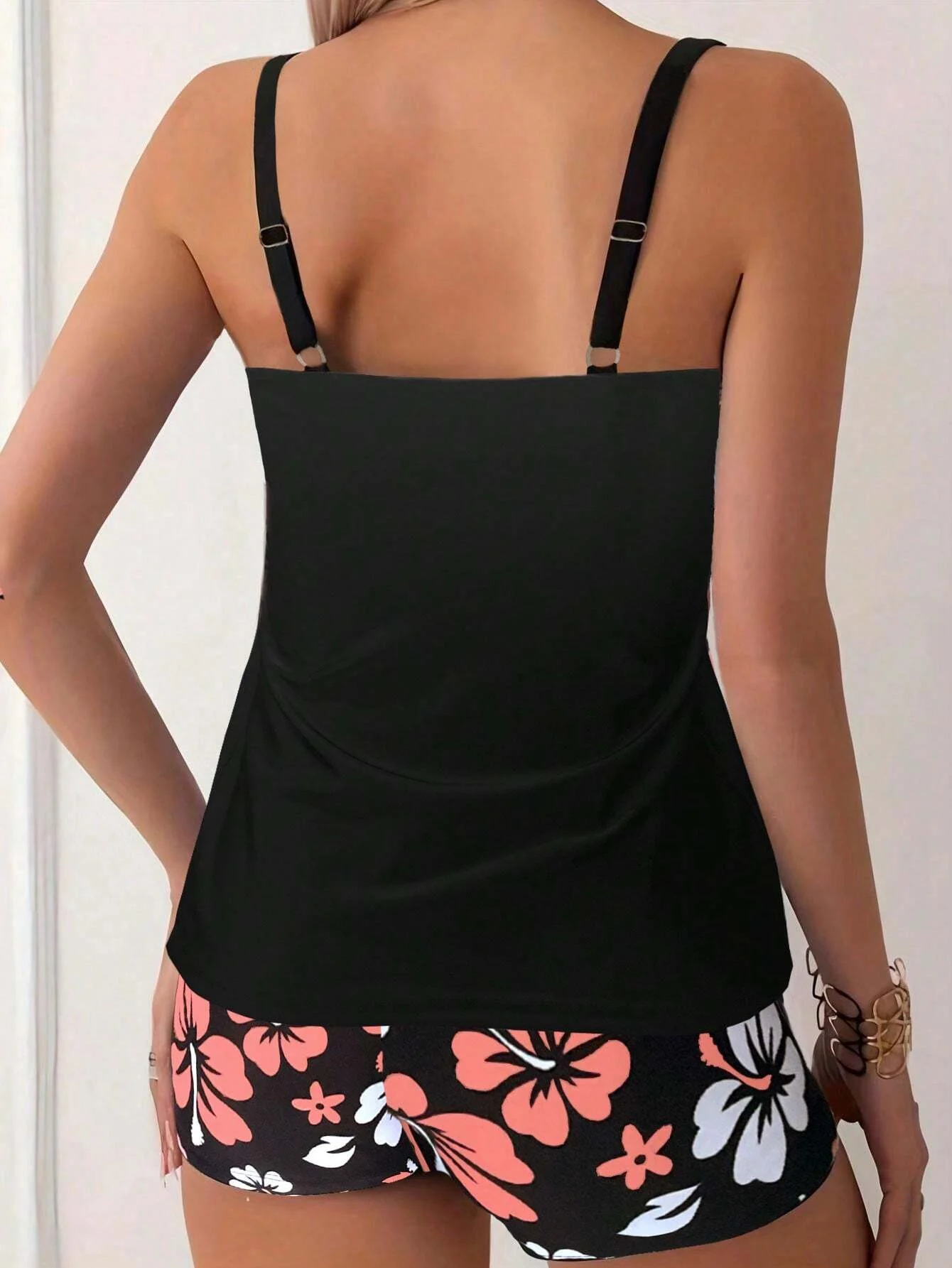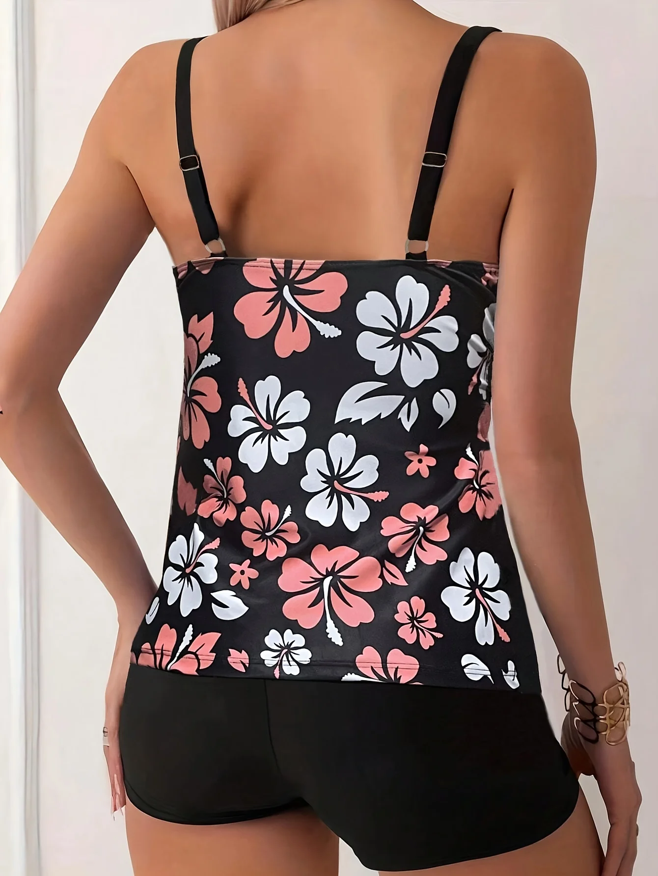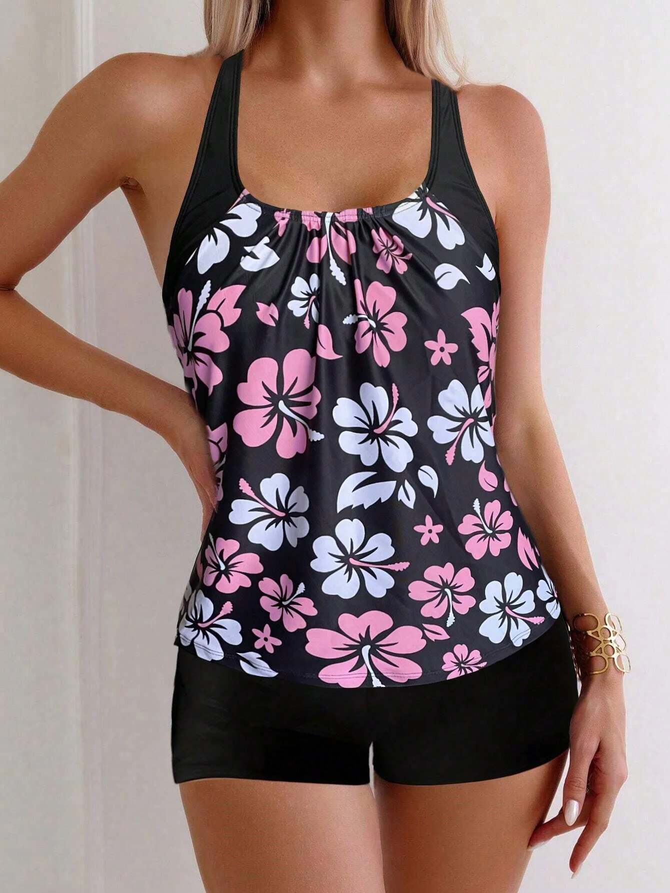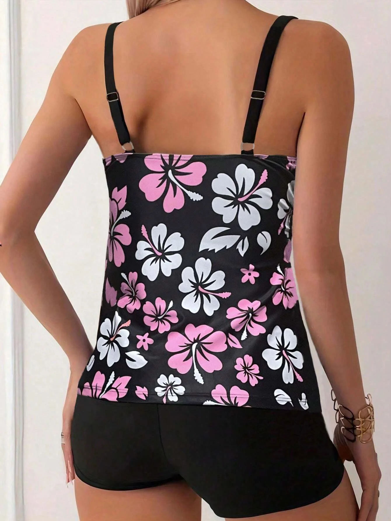 2025 섹시한 꽃무늬 탱키니 수영복, 프린트 수영복, 여성 패딩 목욕 세트, 수영 비치웨어, 여름