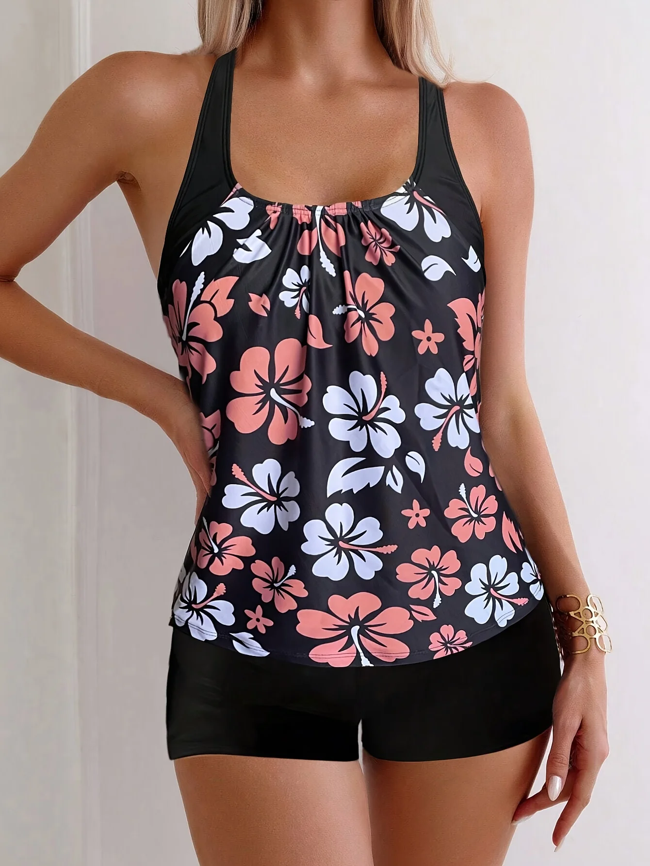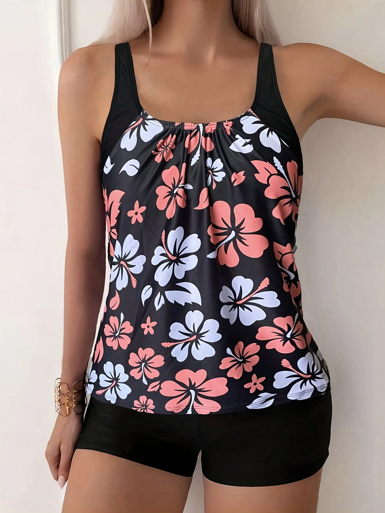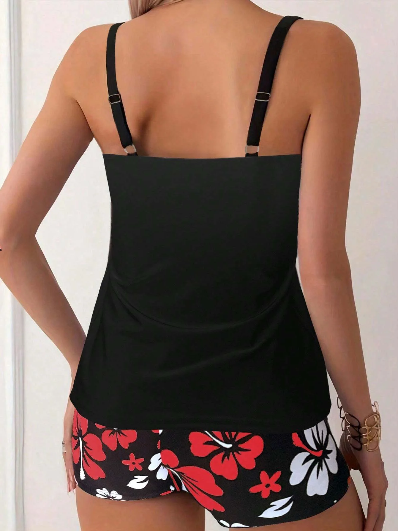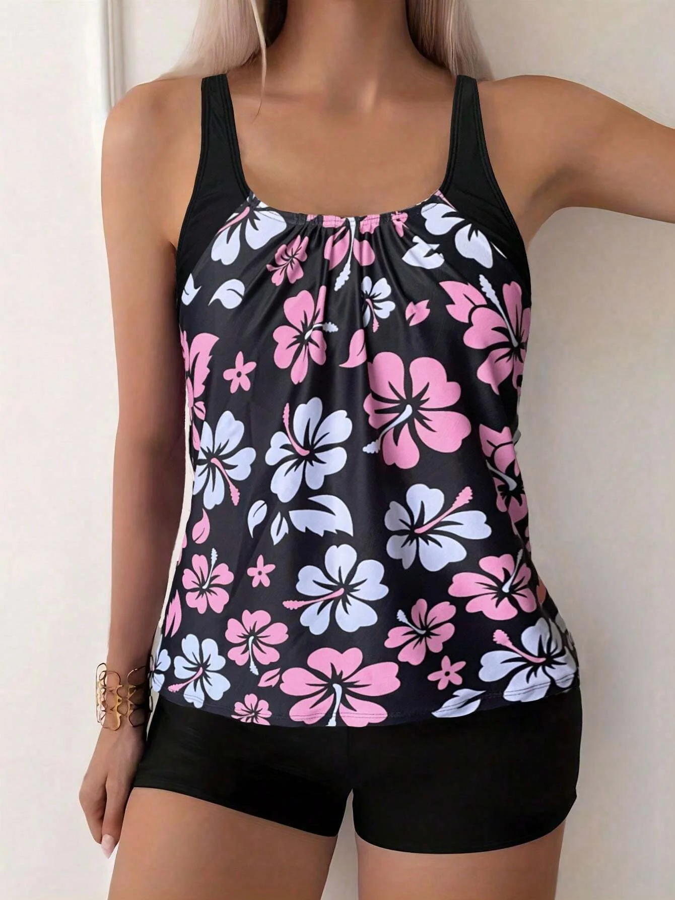 2025 섹시한 꽃무늬 탱키니 수영복, 프린트 수영복, 여성 패딩 목욕 세트, 수영 비치웨어, 여름