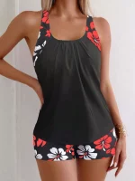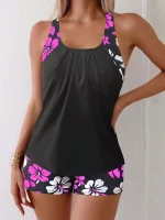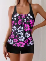 2025 섹시한 꽃무늬 탱키니 수영복, 프린트 수영복, 여성 패딩 목욕 세트, 수영 비치웨어, 여름