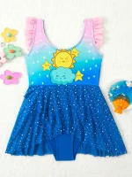 2025 소녀 프린트 프릴 수영복 원피스 키즈 비치 드레스 Strappy 수영복 어린이 수영 수영복 수영복 Beachwear