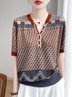 2025 신상 빅사이즈 여름 반팔 가위넥 티셔츠 여성 고급 티셔츠 패션 편안한 레저 티셔츠 탑