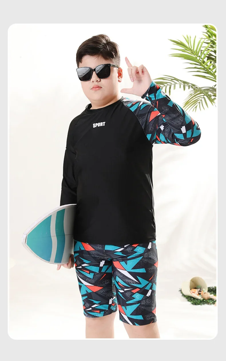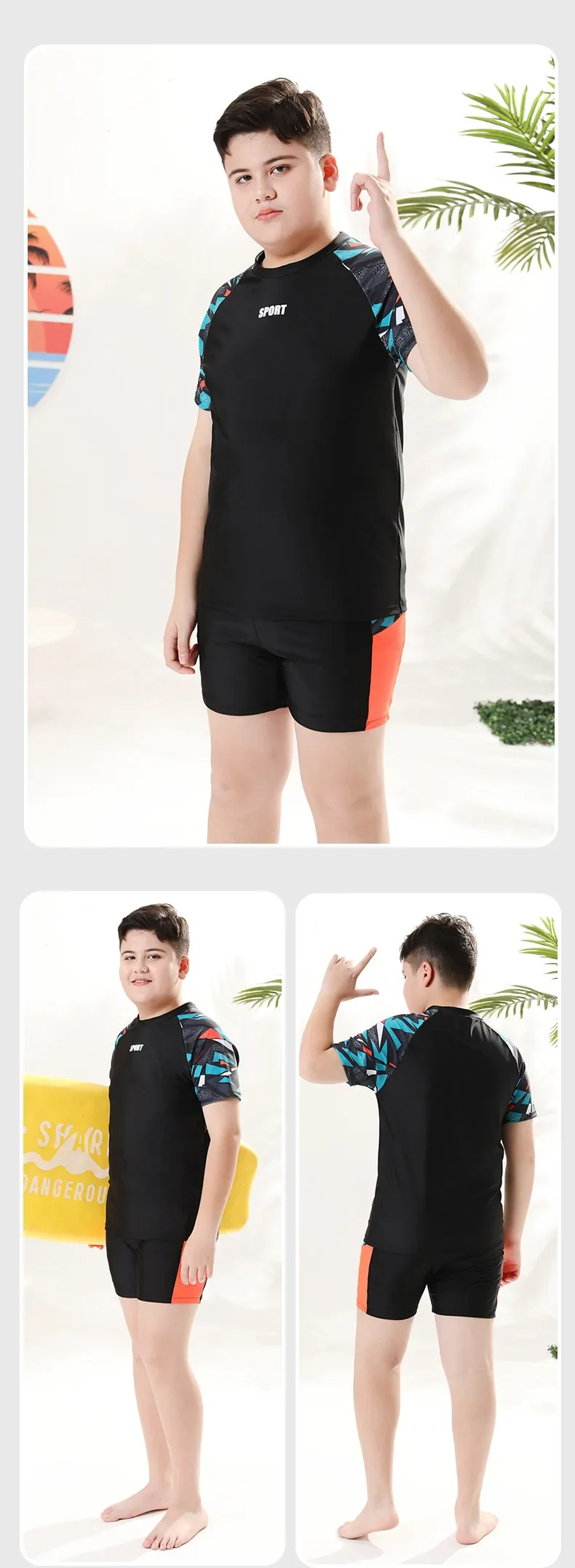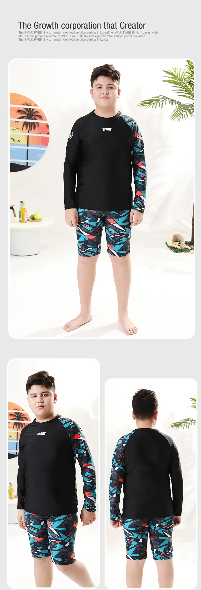 2025 통통한 어린이 스플릿 바디 수영복, Teeange Boys 수영복, 전문 선 스크린 수영복 온천 세트