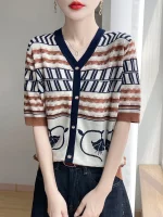 25 뉴 여름 짧은 소매 Lyocell 가짜 카디건 v 넥 쿨 티셔츠 여성 고급 티셔츠 패션 편안한 레저 티셔츠