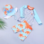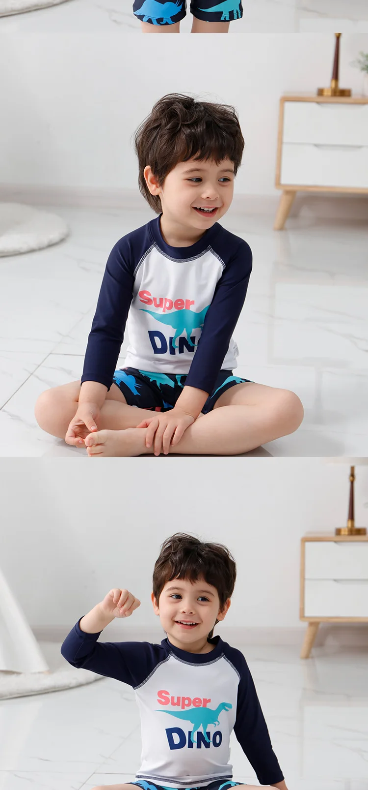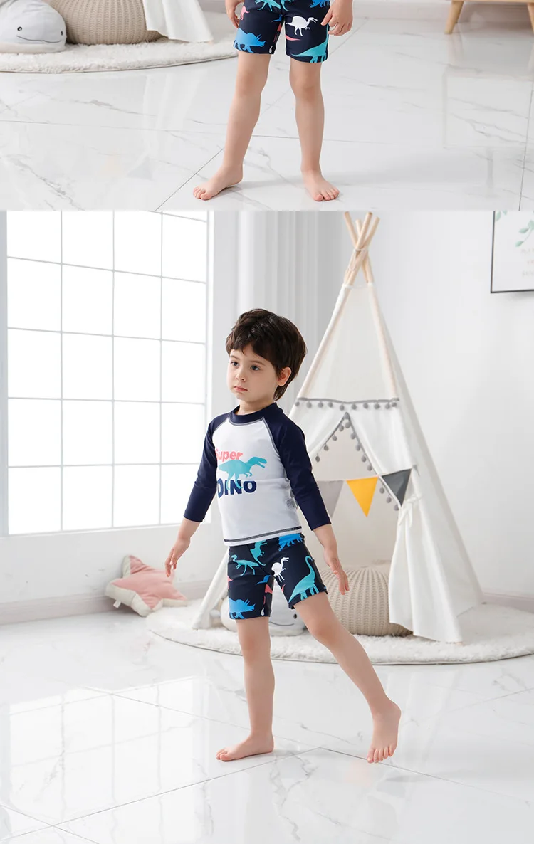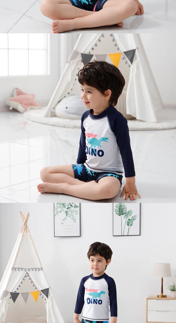 3 개 어린이 수영복 세트 소년 빠른 건조 긴 짧은 소매 상어 패턴 Drawstring 수영 트렁크 모자 분할 수영복