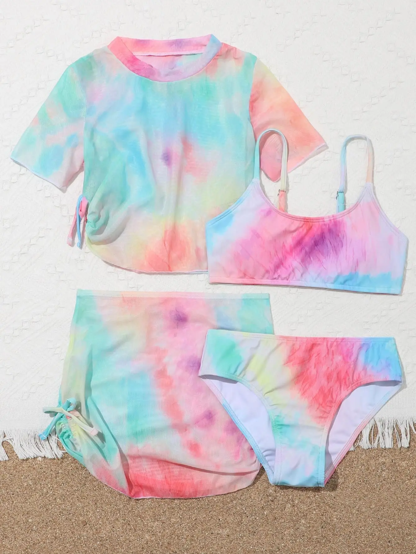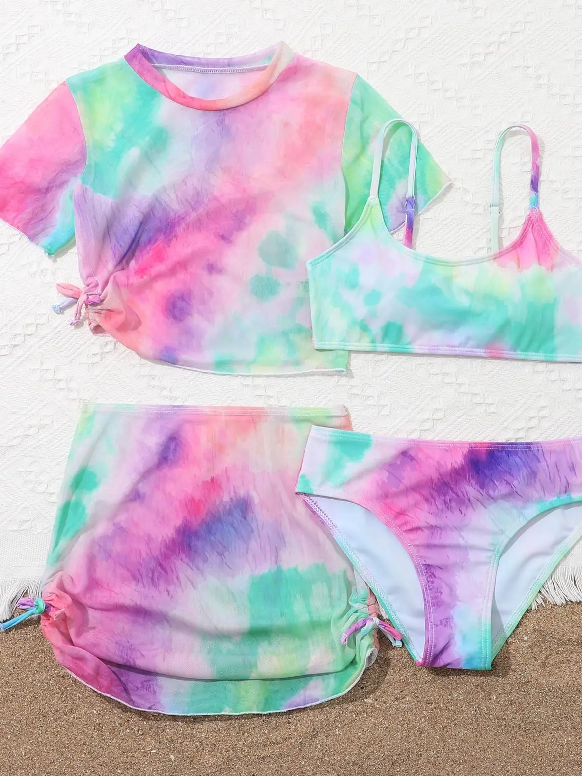 4 조각 비키니 세트 탑 & 스커트 2025 소녀 수영복 어린이 수영복 여성 어린이 Bathers 수영복 수영 수영복 Beachwear