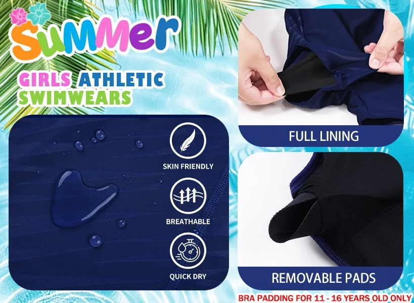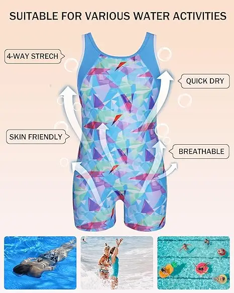 Anfilia Girls 원피스 스포츠 수영복 사이즈 8-14 Boyleg 고탄성 Racerback 운동 훈련 수영복
