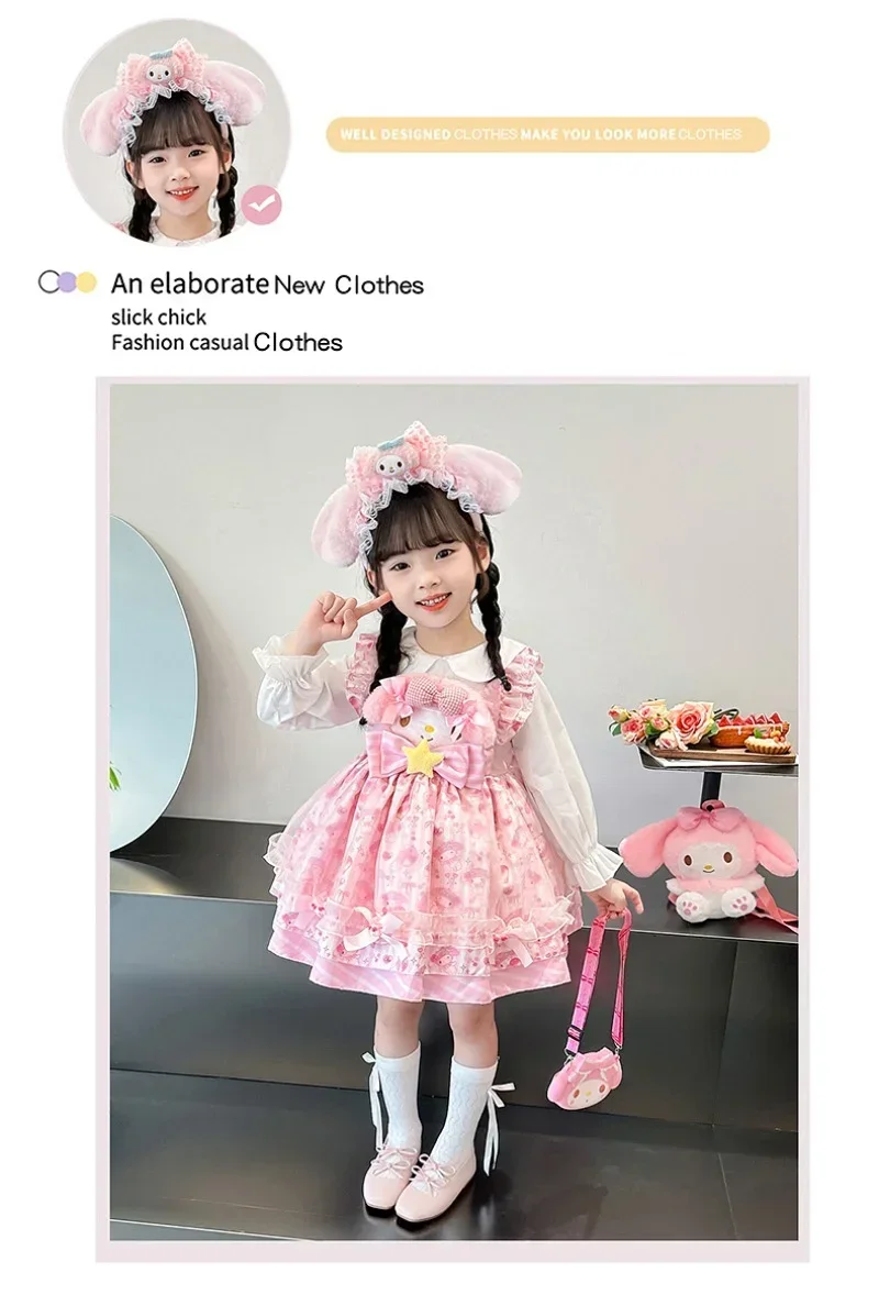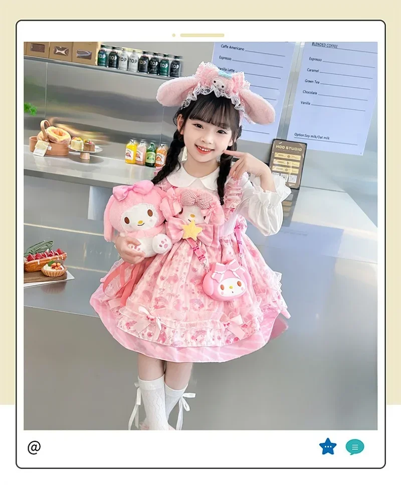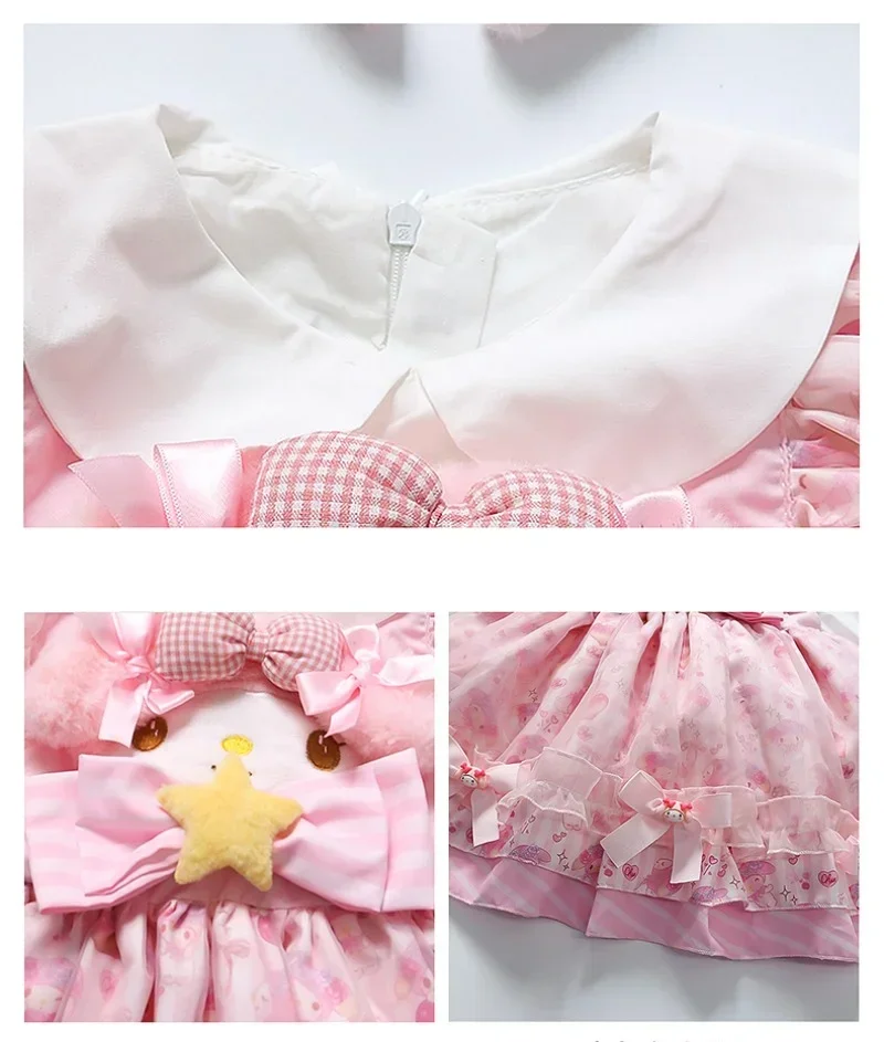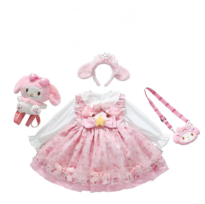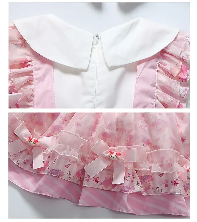 Sanrio Sanrio 마이 멜로디 어린이 코스프레 드레스 반팔 핑크 소녀 카와이 의류 공주 드레스 어린이 애니메이션 선물