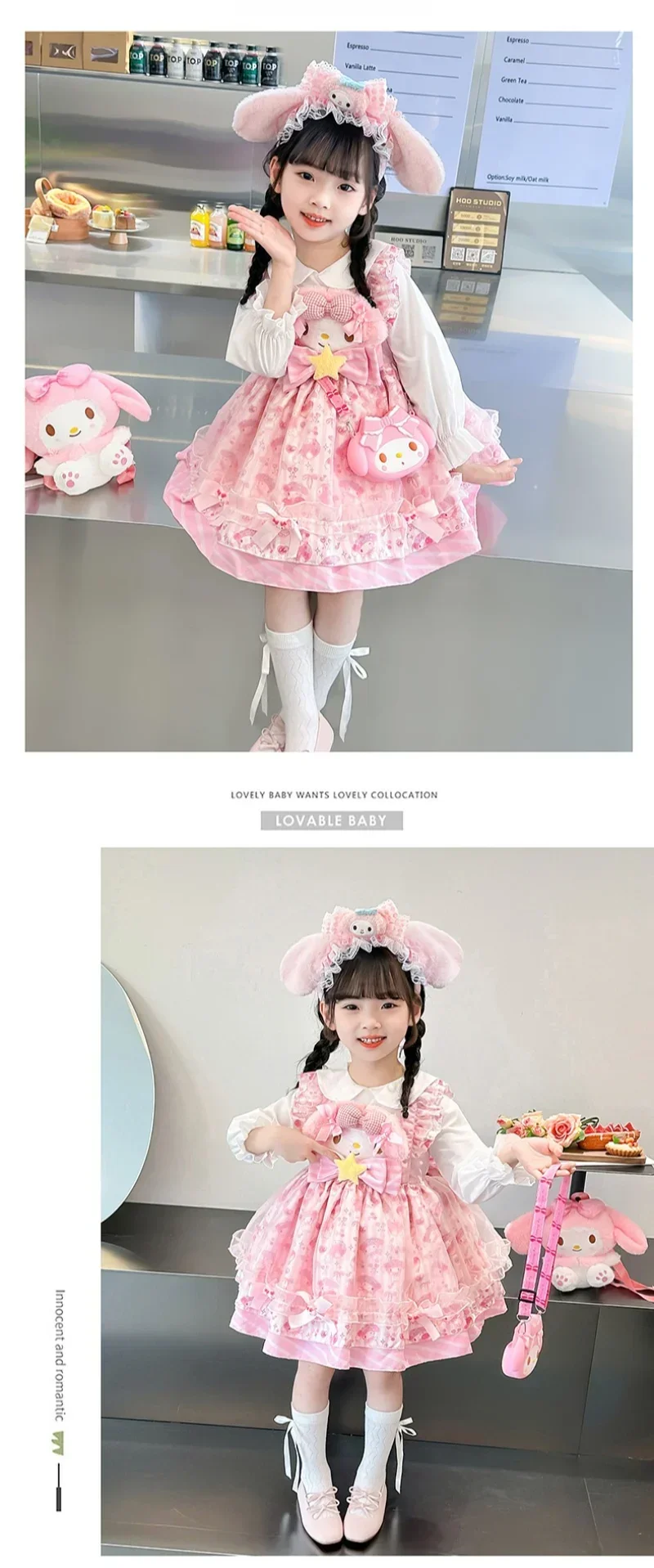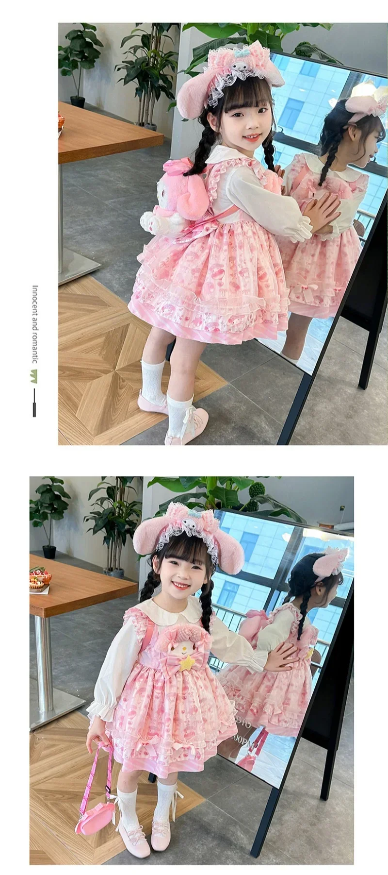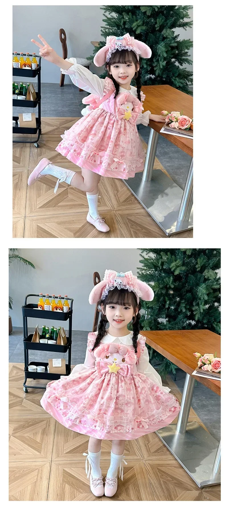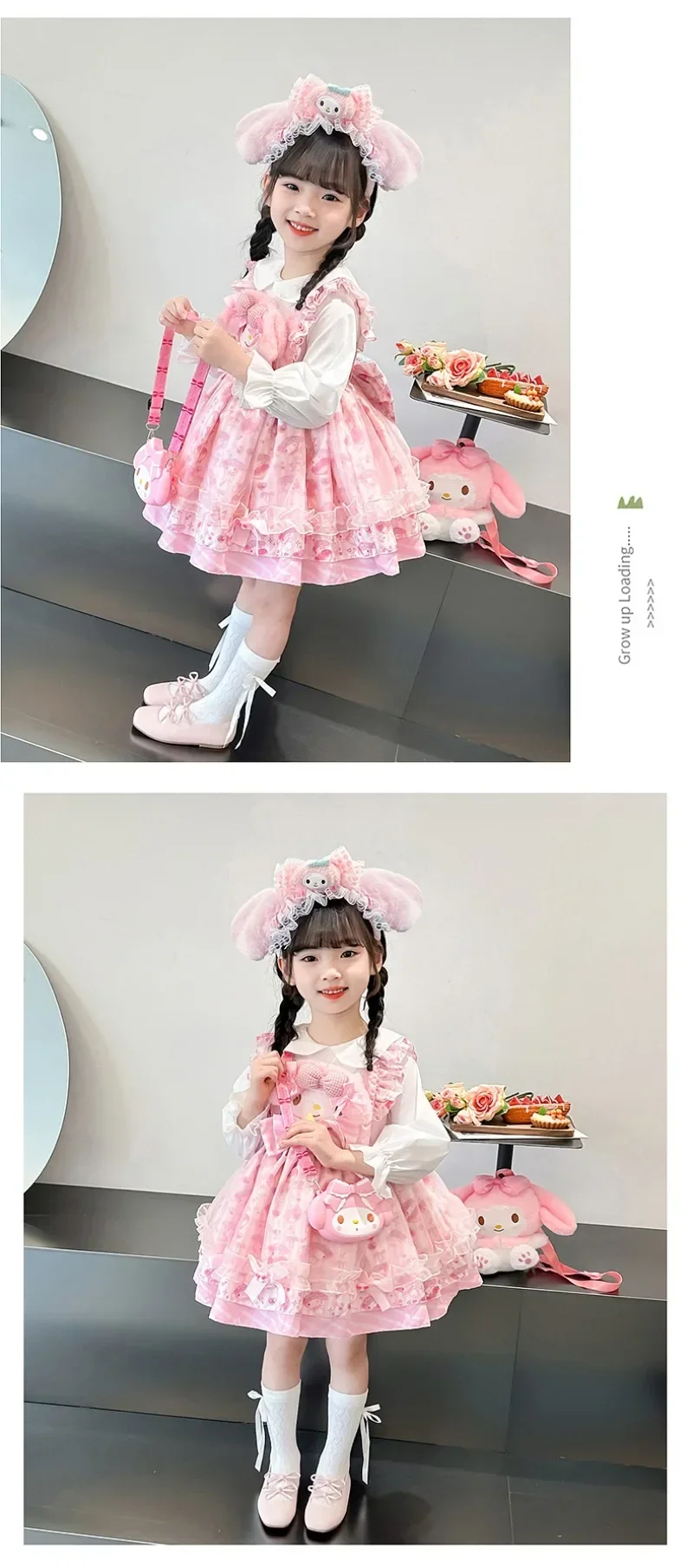 Sanrio Sanrio 마이 멜로디 어린이 코스프레 드레스 반팔 핑크 소녀 카와이 의류 공주 드레스 어린이 애니메이션 선물