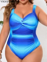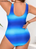 VigoJany 2025 블루 그라디언트 플러스 사이즈 수영복 여성 스트랩 업 대형 원피스 수영복 여름 해변 통통한 수영복