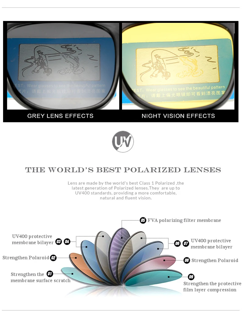 - Lens Material: Polarize,100% UV 400 Protection against harmful UVA/UVB RAYS