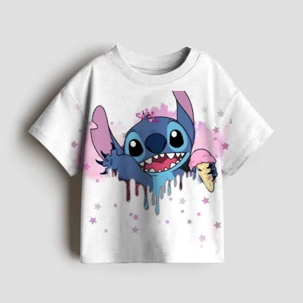 2025 디즈니 스티치 3-14세 여아용 면 티셔츠 여름 귀여운 만화 반팔 아동 캐주얼 의류 티셔츠 키즈 상의