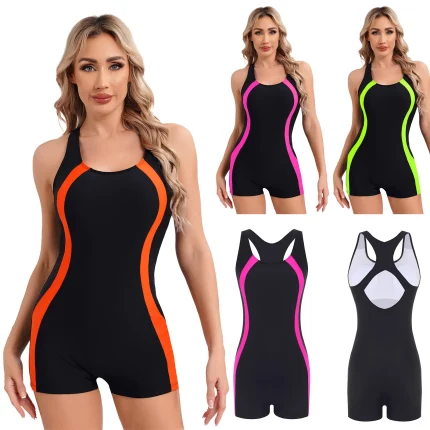 여성 민소매 Boyleg 운동 수영복 원피스 Racerback 겸손한 수영복 패딩 수상 스포츠 점프 슈트 비치 서핑